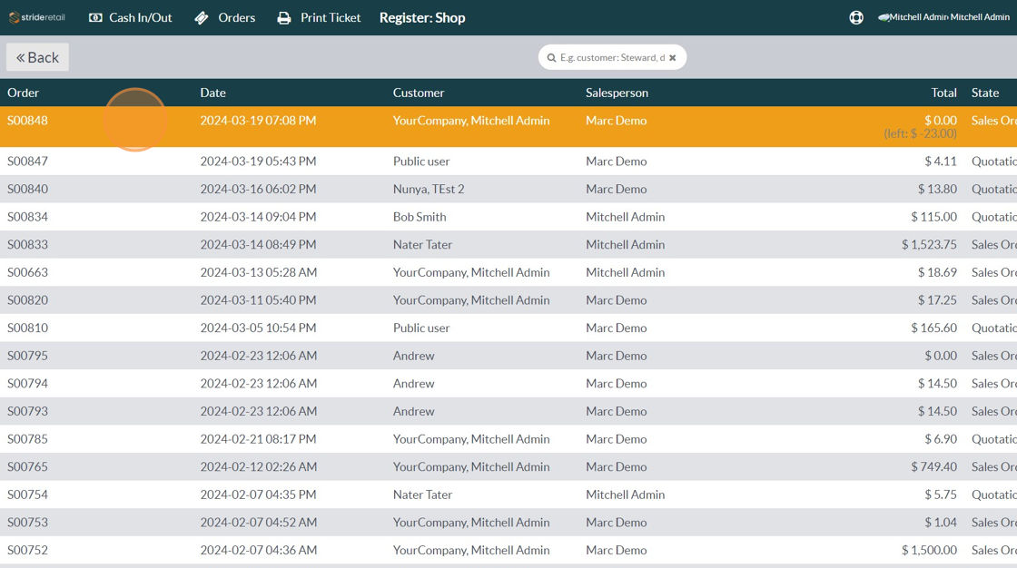 19. Notice that the SO line for the refund does not have any blue text meaning that the SO is completely settled. It also showed that it was settled through the POS.