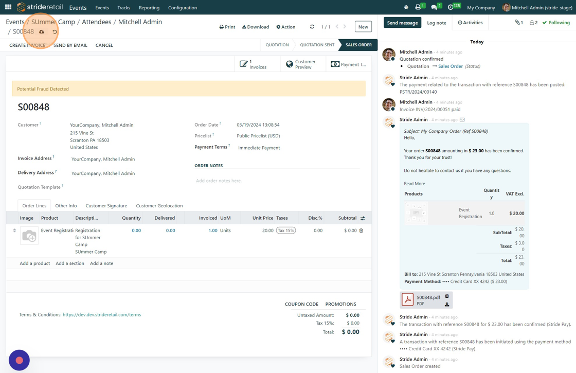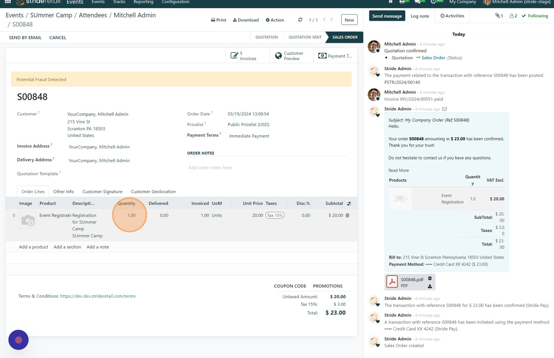 Also, in this case, we had automatic invoice turned on for website orders. If you do not have this turned on you will need to create an invoice first and then change the Quantity line.