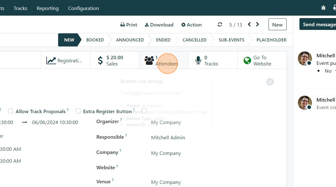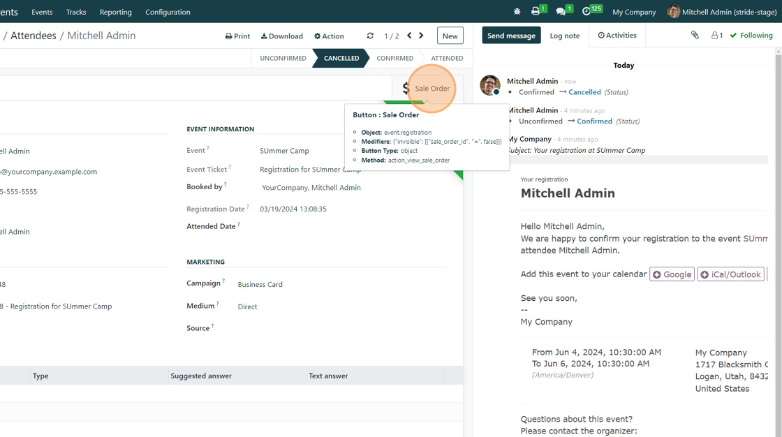 The process is simple. You will want to cancel the attendee, set the sales order line with the even registration to the appropriate number, and then settle that sales order through the POS.