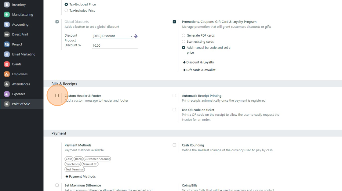 Configure Receipt Header and Footer Settings on StrideRetail POS.