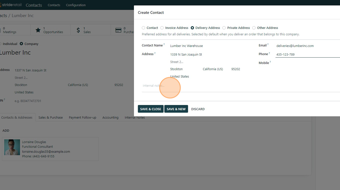 9. The new address is added in the "Contacts and Addresses" section