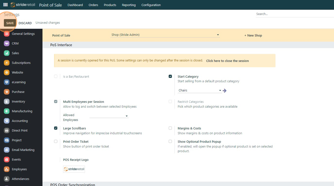 1. Stride allows you to set a different logo for your receipts for each register. Please note that if you do not set a logo on the register level it will default to use the logo in the general "company" settings.