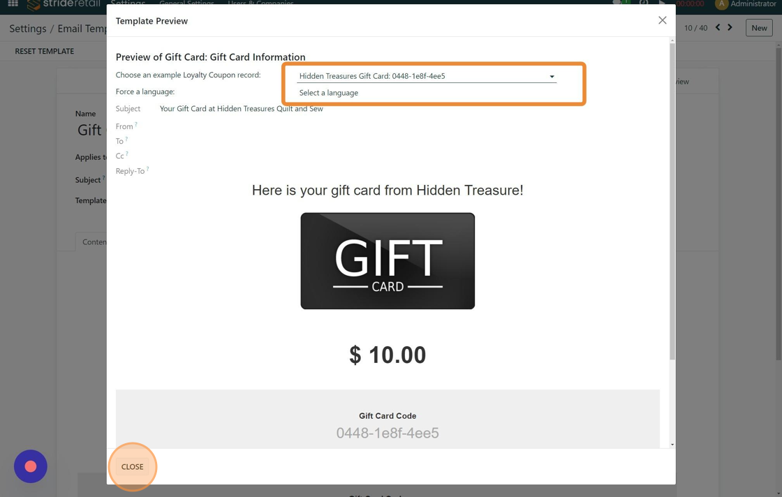 10. In the area inside the orange rectangle you can select different records (contacts etc.) to see how the email changes for different records. If it does not change for different records you may have inadvertently edited some of the code.