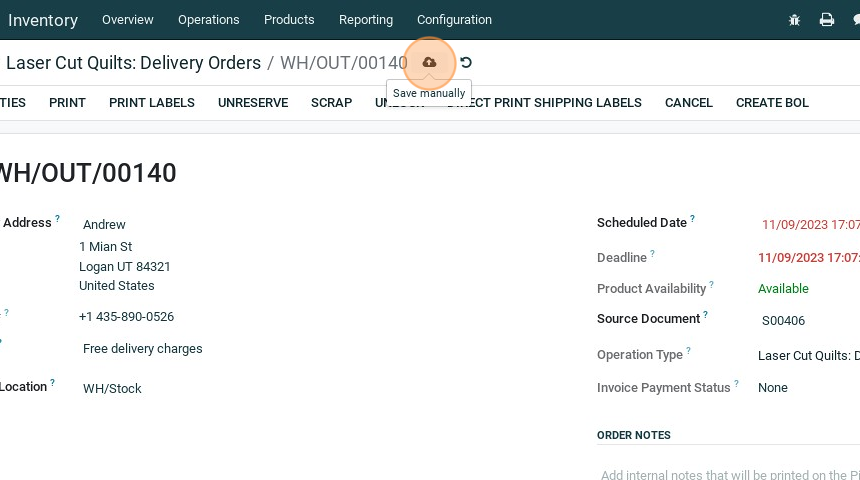 Manually add a tracking number to a delivery order.
