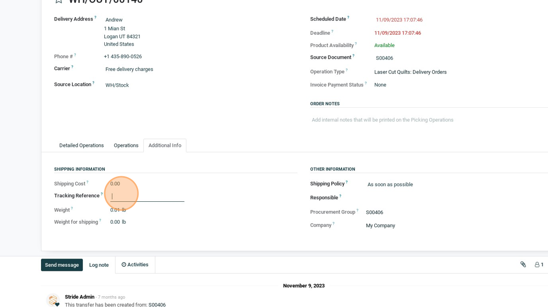 6. Click the "Tracking Reference?" field and add your tracking number from your other provider.