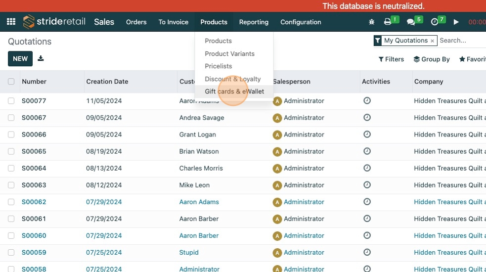 Please note: Stride recommends not entering a customer in the "Partner" field. Adding a customer will limit WHO can use the gift card. Leaving it blank will allow anyone with the card to use it.