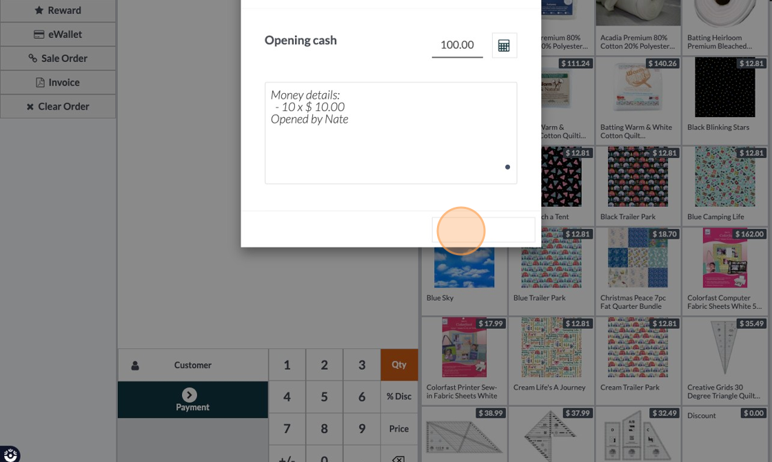 4. Click select the cashier.