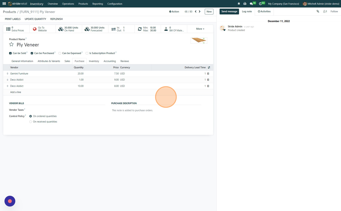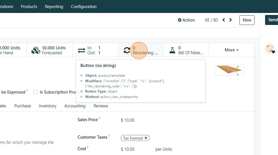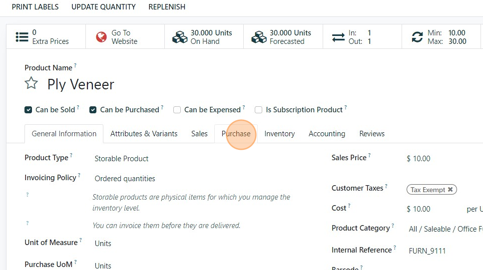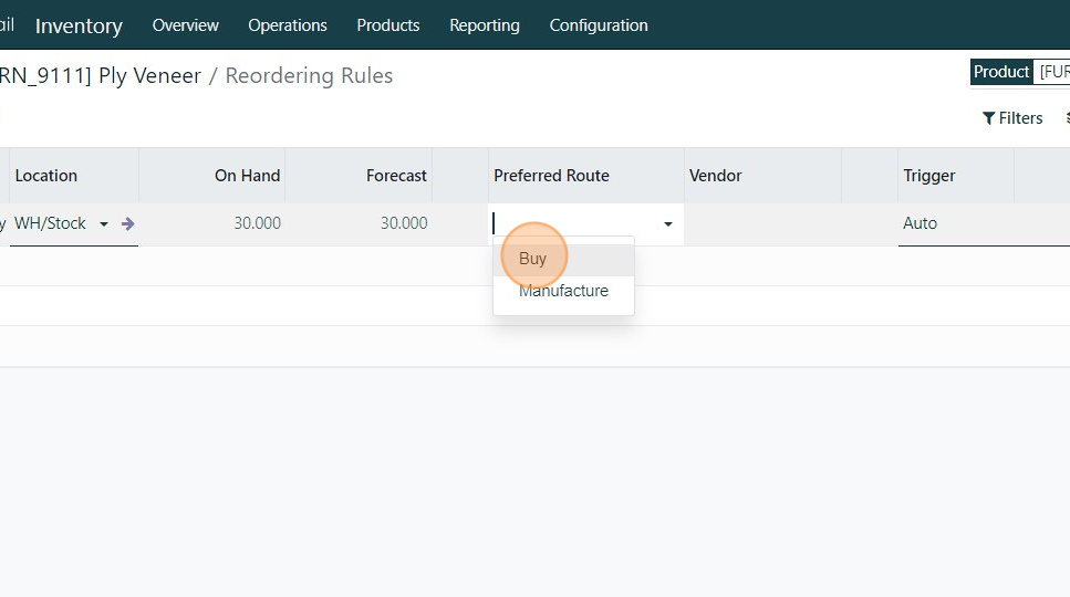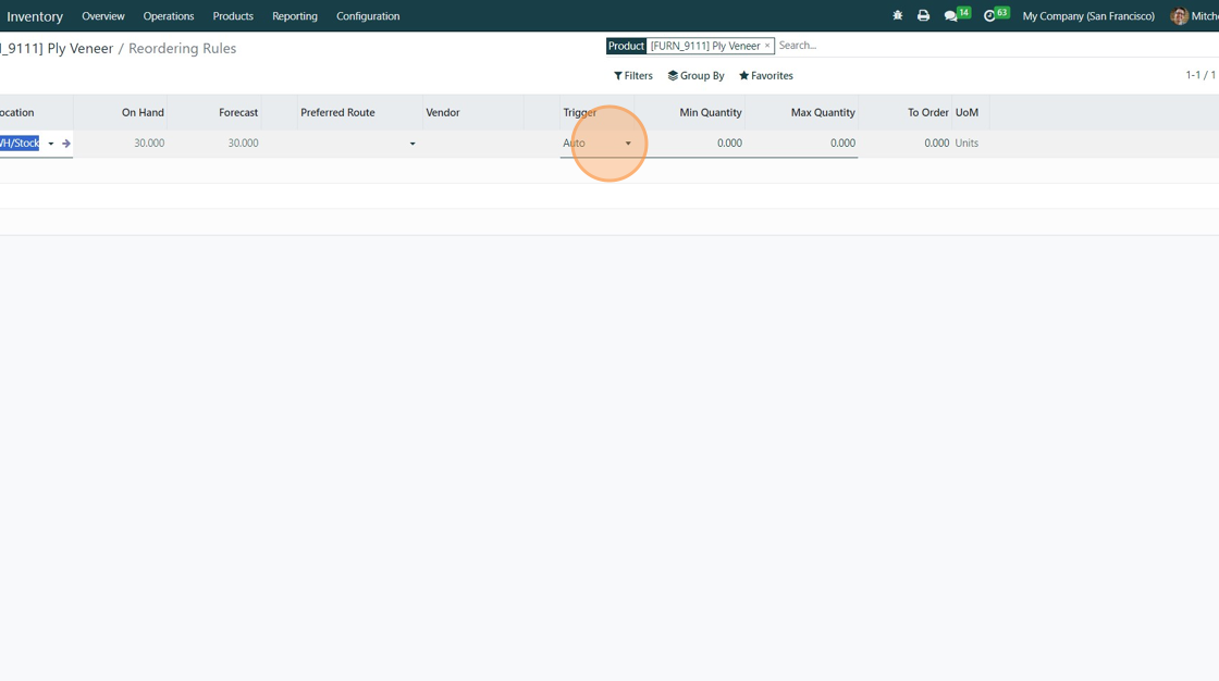 *Note - If a manual Reordering Rule has been created (ie an item has an on-hand quantity that is less than the forecasted quantity) this will say "Min-Max" not Reordering. This is because a manual rule has already been created.