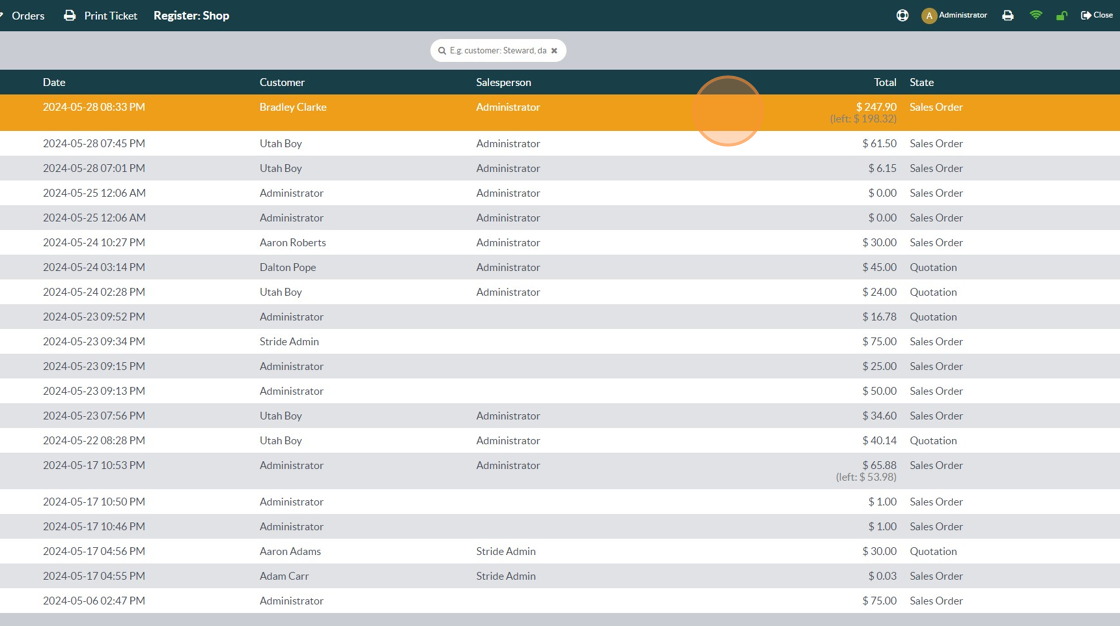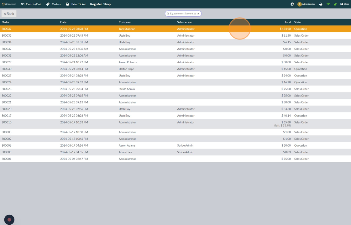 1. In Stride you can settle Sales Orders in the POS. You can also take down payments on a sales order. This tutorial will show you how to do this and the process flow for recording this.