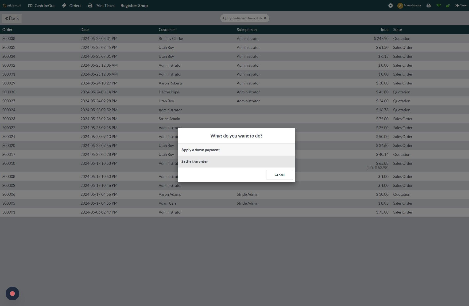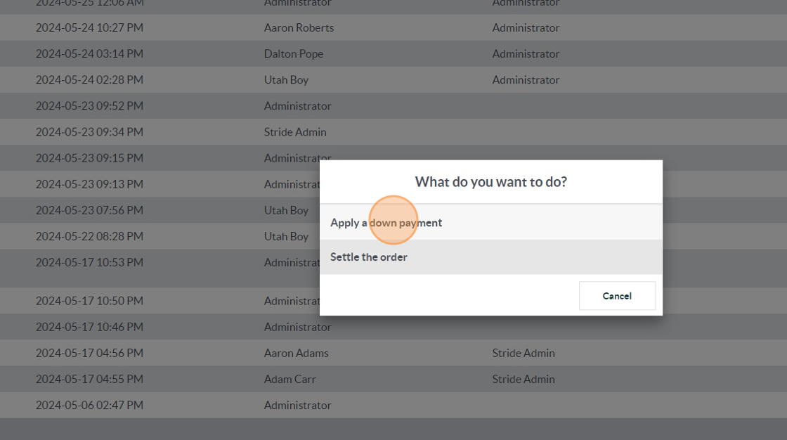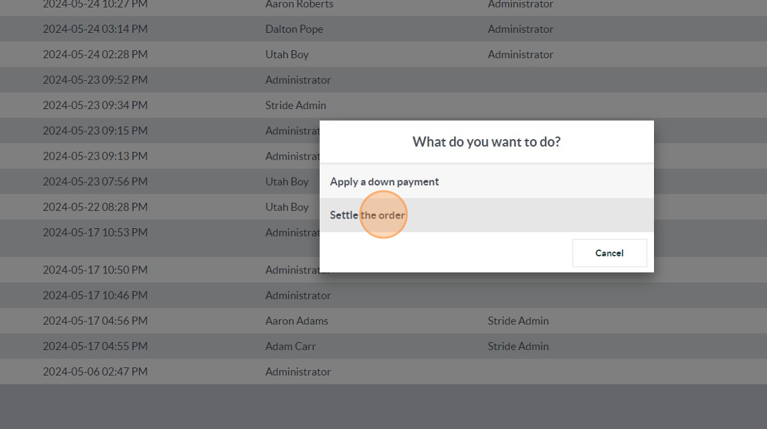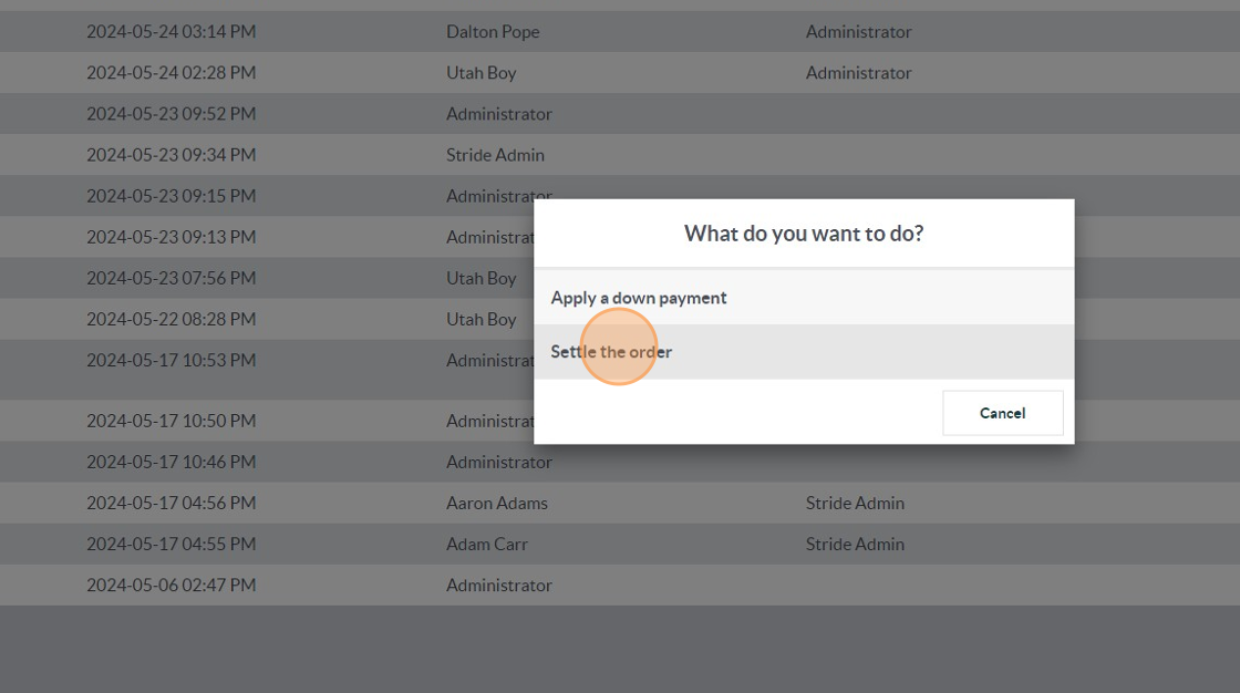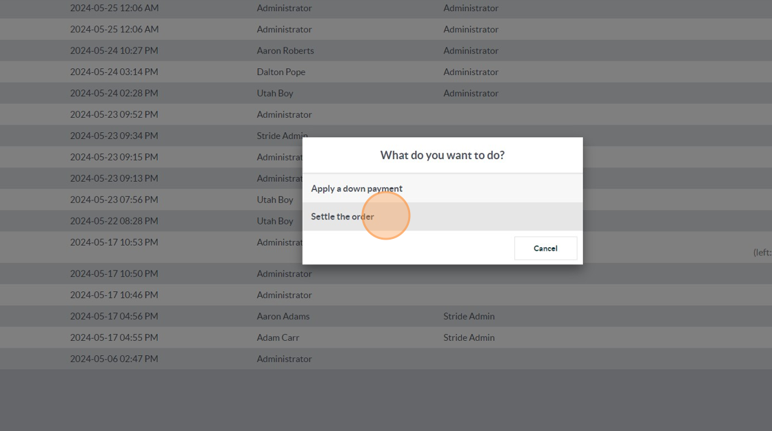 4. In Stride you can settle the order or take a down payment. First we will settle the order.