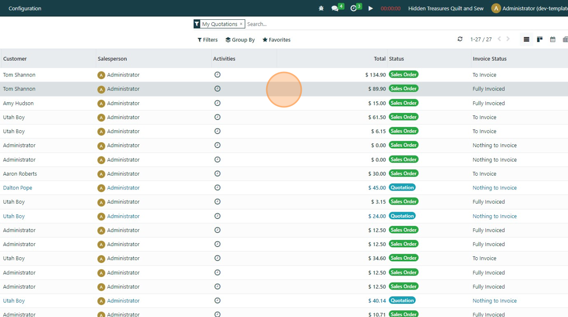 16. First we will go to the "Sales Module" and look at the order we finished first.