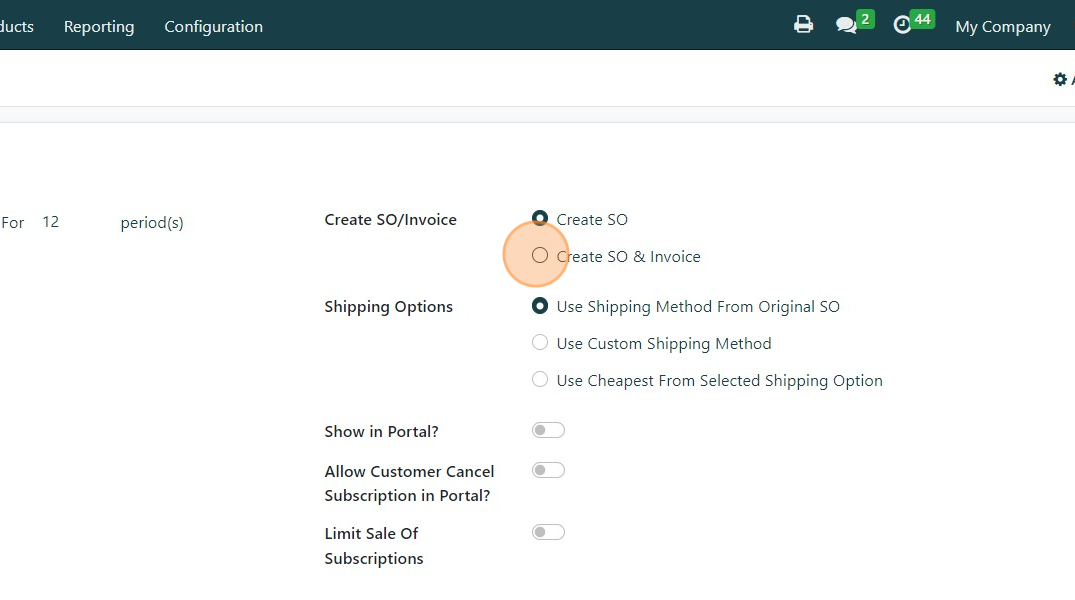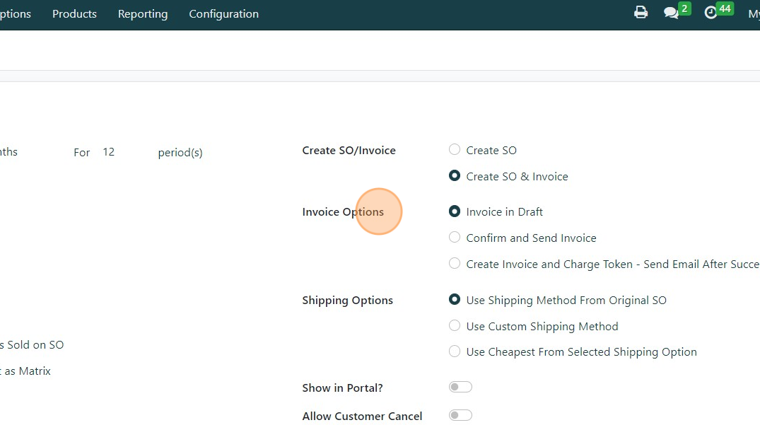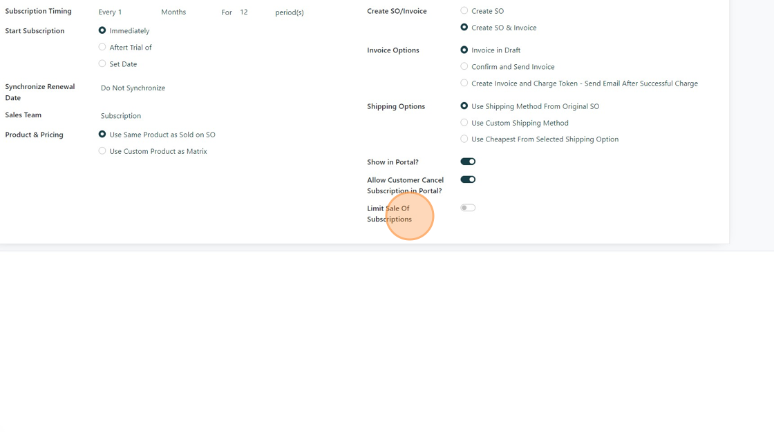 18. Show in Portal: If turned on, this option makes the subscription visible in the customer portal.