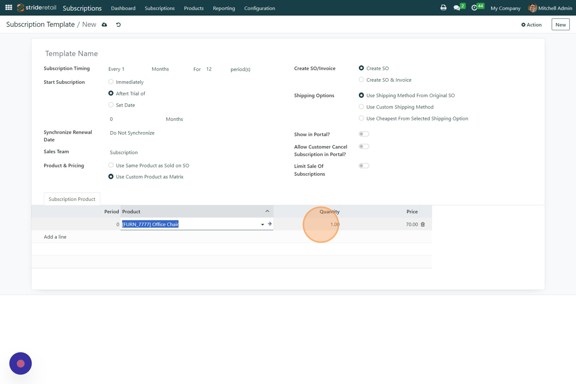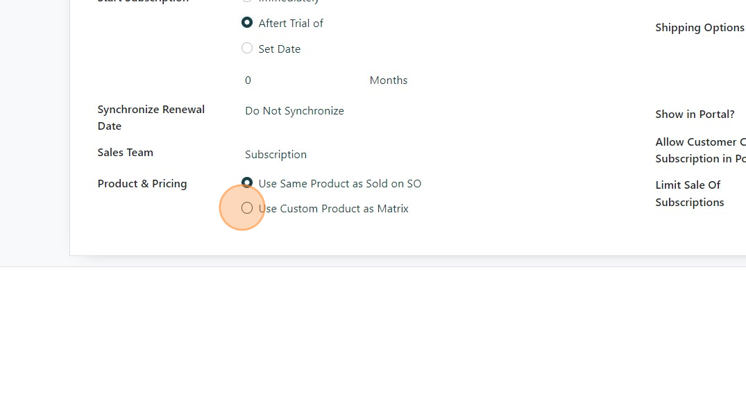 8. If your subscription is set to run indefinitely you can choose custom product matrix and add multiple products, set individual product quantities and prices.